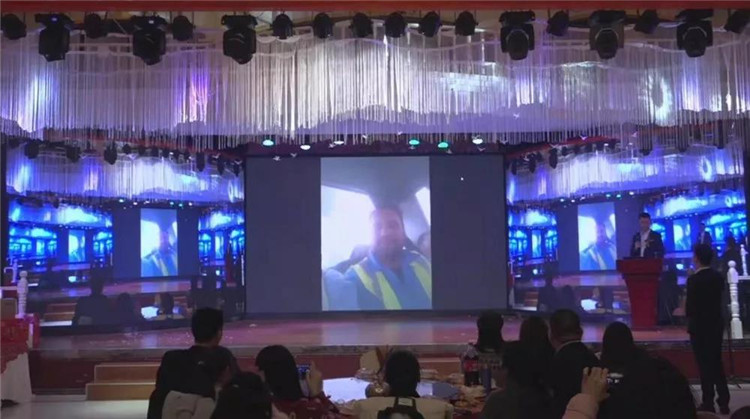 并與因遠(yuǎn)在異國他鄉(xiāng)(迪拜)而不能參加公司年會(huì)的技術(shù)員以及海外合作伙伴進(jìn)行現(xiàn)場(chǎng)視頻連線。